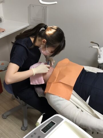 今は患者さんをチェアーに誘導したり、治療の準備物を覚えたりと一生懸命頑張ってくれています☆